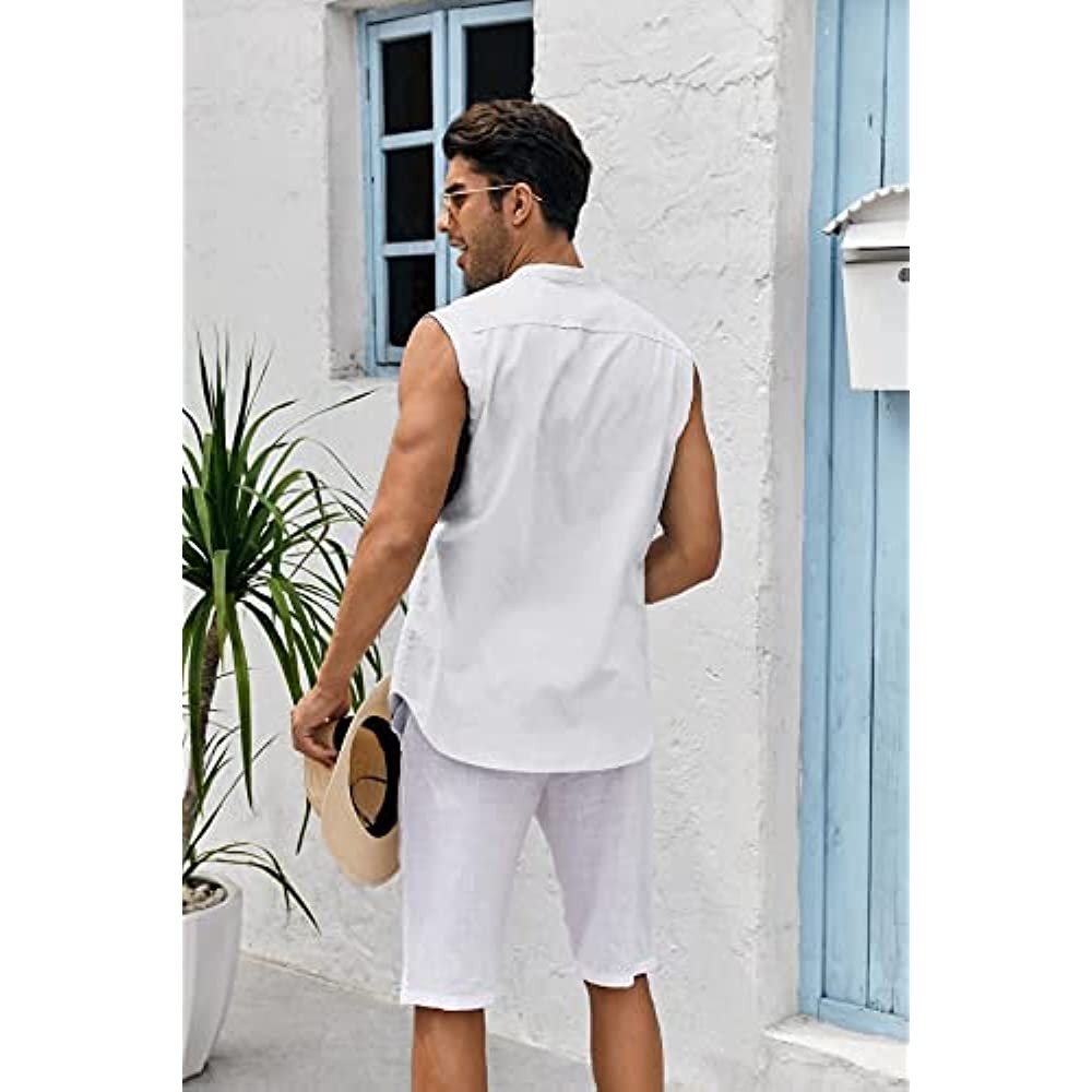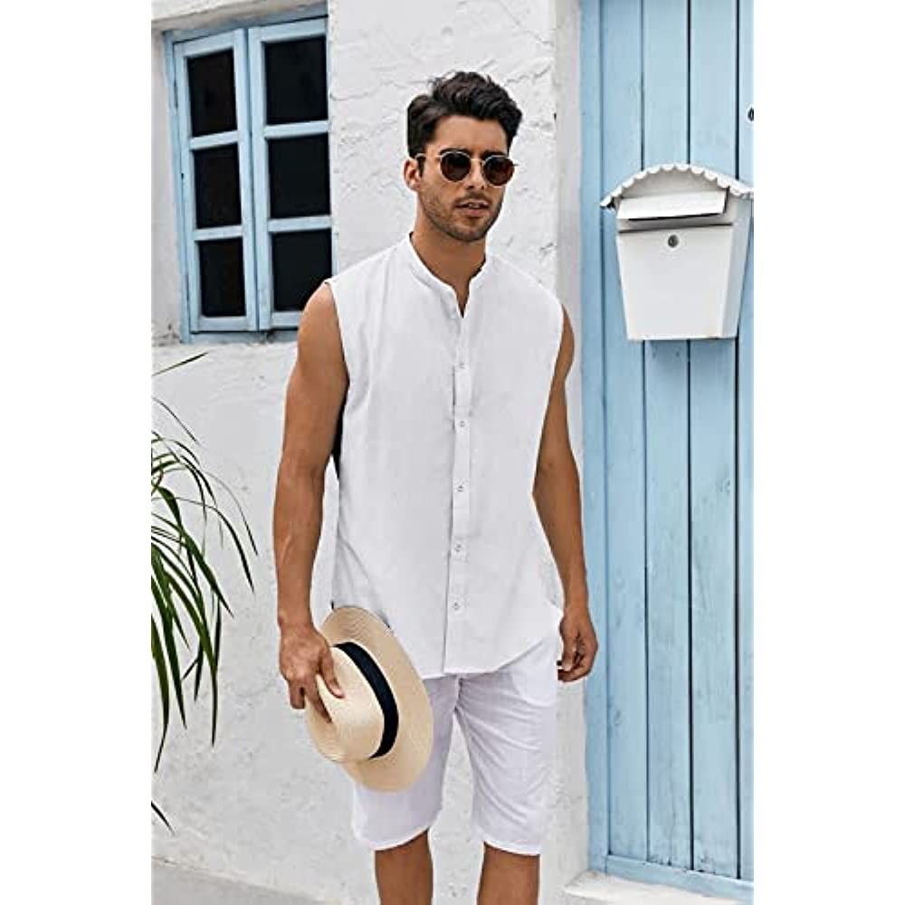 ·  Feature:Linen button up shirts for men. Fashion sleeveless design, keep cool