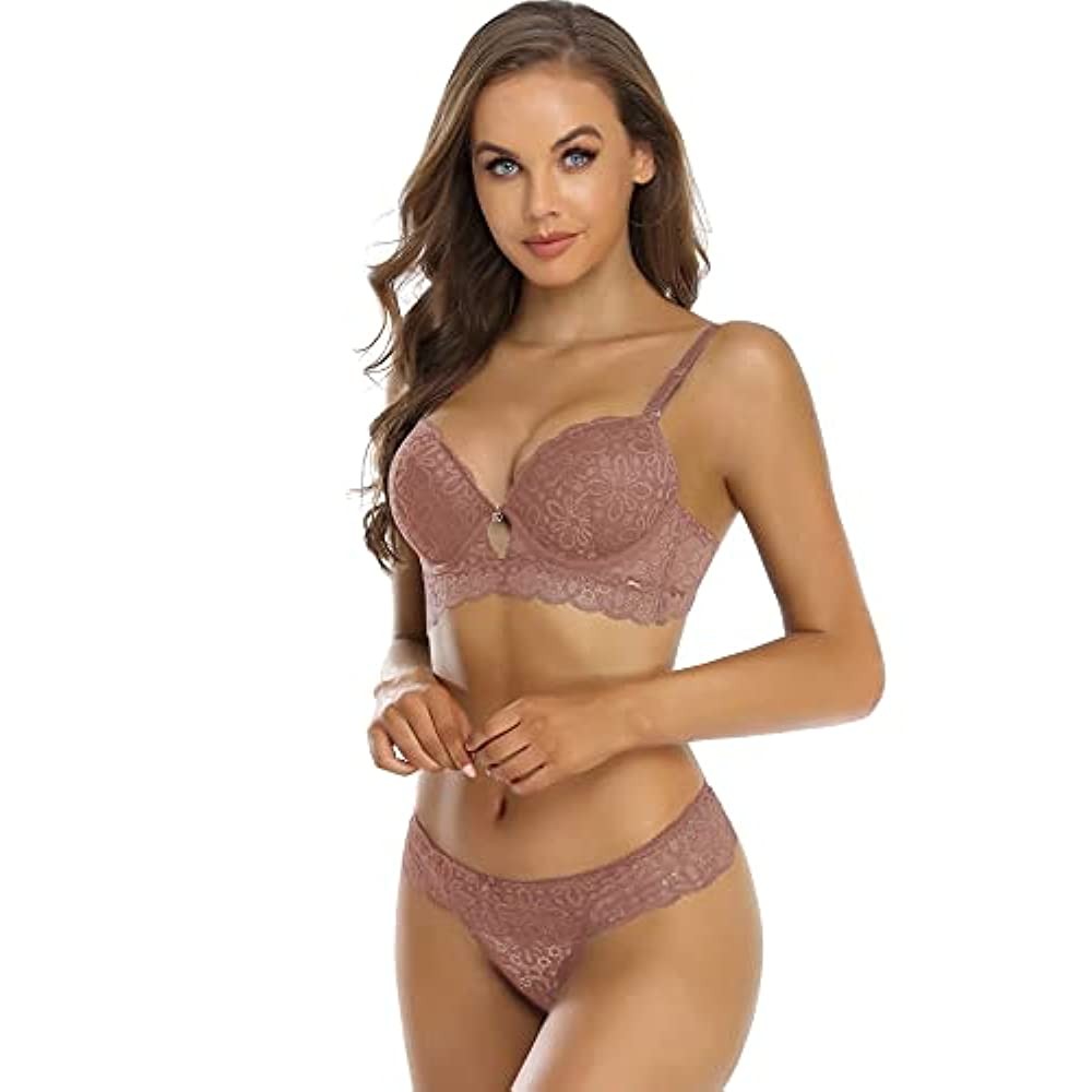• 【Package Included】-- 1 Bra + 1 Thong, Multiple colors for you to choosewith sizes ranging from 34B to 38C.Made of ultra soft elastic lace, very smoothand super stretchy.